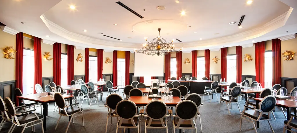 Eine Leinwand, Beamer und Flipchart mit Papier und Stiften sind inklusive in die Raummiete.