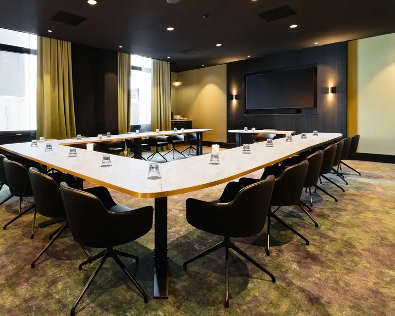 Pistache ist ein schöner, farbenfroher Tagungsraum mit fester U-Form, der für 18 Personen geeignet ist. Der Raum bietet eine großzügige Aufteilung und bequeme Schalensitze für ein angenehmes Meeting-Erlebnis. Darüber hinaus ist der Raum mit einer Klimaanlage und der neuesten audiovisuellen Technik ausgestattet, einschließlich eines großen TV-Bildschirms, um eine optimale Präsentation zu ermöglichen. Eine Kaffeemaschine ist ebenfalls vorhanden, so dass Sie eine frische Tasse Kaffee, Tee oder Cappuccino genießen können.