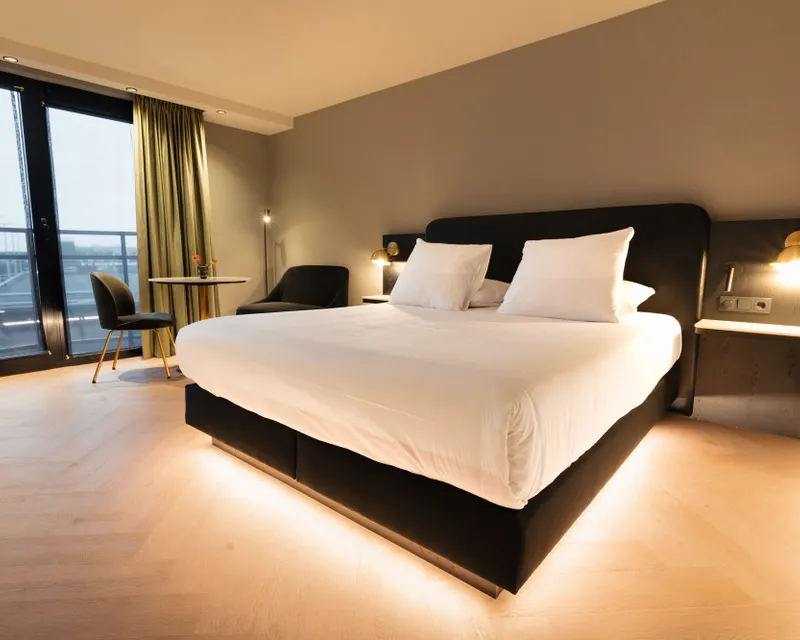 Unser Comfort Deluxe Zimmer bietet die perfekte Atmosphäre zum Entspannen oder Arbeiten. Das Zimmer ist mit einem luxuriösen Kingsize-Bett und einem Topper für einen erholsamen Schlaf ausgestattet. Zudem verfügt es über einen Smart-TV, kostenloses WLAN sowie Kaffee- und Teezubehör. Das luxuriöse Badezimmer umfasst eine begehbare Regendusche und eine Badewanne.
