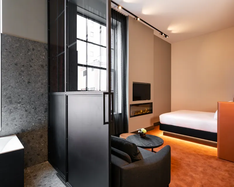 Mit einer Deckenhöhe von ca. 4 Metern und mannshohen Fenstern hat dieses Loft alles, was man für eine ganz besondere Übernachtung braucht. Das Zimmer verfügt über ein schönes Kingsize-Bett mit Topper, eine luxuriöse Espresso-Kaffeemaschine, Safe, Minibar, Smart-TV und kostenloses W-LAN. Außerdem gibt es eine gemütliche Sitzecke, in der Sie auch arbeiten können, sowie eine bequeme niedrige Sitzgelegenheit am Kaminofen.