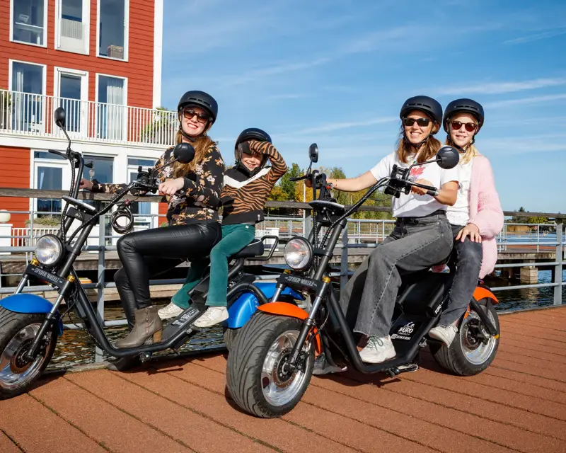 De E-chopper is 100% elektrisch en daarmee milieuvriendelijk. Vanaf 1 januari 2023 geldt er een helmplicht voor voertuigen zoals de E-chopper. Geen zorgen: bij het huren van een E-chopper ontvangt u van ons een goedgekeurde helm in bruikleen, zodat u veilig op pad kunt.