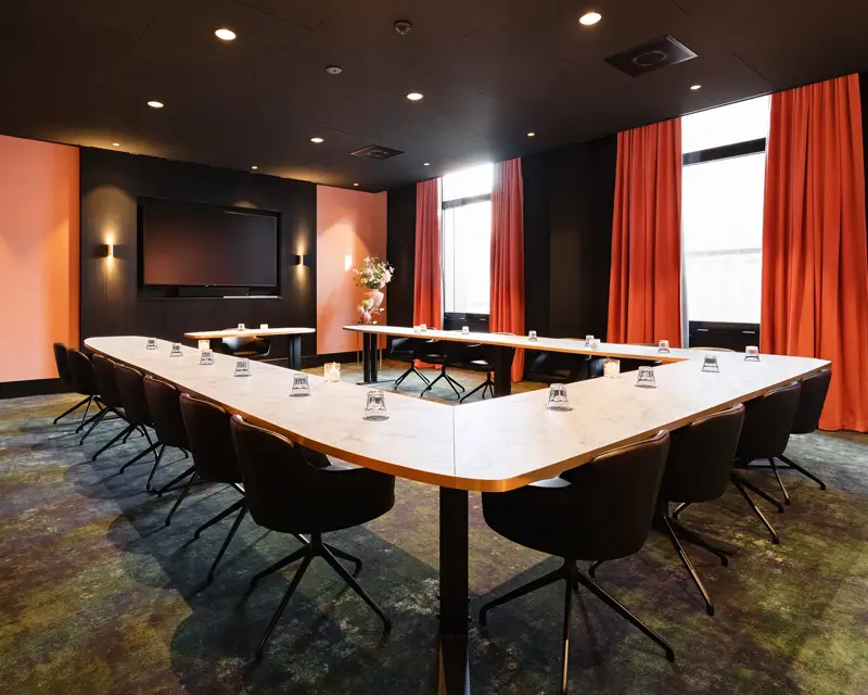 Pêche is een prachtige, kleurrijke vergaderzaal met een vaste U-opstelling, geschikt voor 18 personen. De zaal biedt een ruime opstelling en comfortabele kuipstoelen voor een aangename vergaderervaring. Bovendien is de zaal uitgerust met onder andere klimaatbeheersing en de nieuwste audiovisuele technologie, waaronder een groot tv-scherm, voor een optimale presentatie-ervaring. Daarnaast is er een koffiemachine aanwezig, zodat u kunt genieten van een vers kopje koffie, thee of cappuccino.