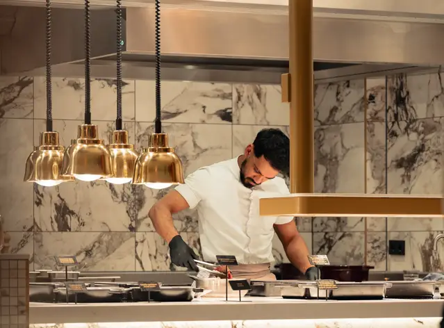 Bij Cerise Grand Buffet draait alles om keuze en kwaliteit. Ons live cooking buffet biedt een overvloed aan heerlijke, smaakvolle gerechten, bereid met de verste ingrediënten en een vleugje creativiteit. Met een royale selectie van voorgerechten, verse sushi, pokébowls, een oesterbar, vis- en vleesgerechten die à la minute worden bereid, én een groots dessertbuffet met een softijsstation, is er voor ieder wat wils!